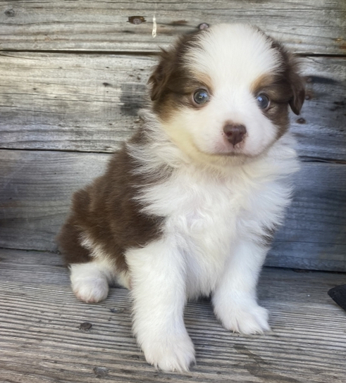 Mit 12 Wochen ist Brandy neugierig, verspielt und bereits gut sozialisiert. Sie liebt es, ihre Umgebung zu erkunden, mit Menschen zu interagieren und bringt die typische Energie und Lernfreude eines Australian Shepherds mit.