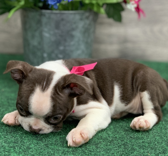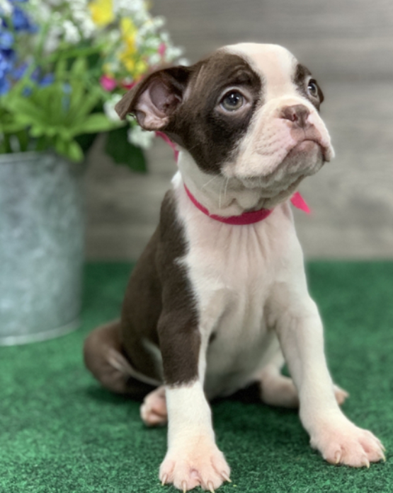 Gwen ist eine charmante, aufgeweckte Boston Terrier Hündin, 12 Wochen alt, mit der typischen schwarz-weißen Fellzeichnung. Sie ist liebevoll, neugierig und sozialisiert, perfekt für Familien, Singles oder Paare, die einen freundlichen und intelligenten Hund suchen. Gwen wurde in einer liebevollen Umgebung mit viel Fürsorge, tierärztlicher Betreuung und professionellem Training aufgezogen.