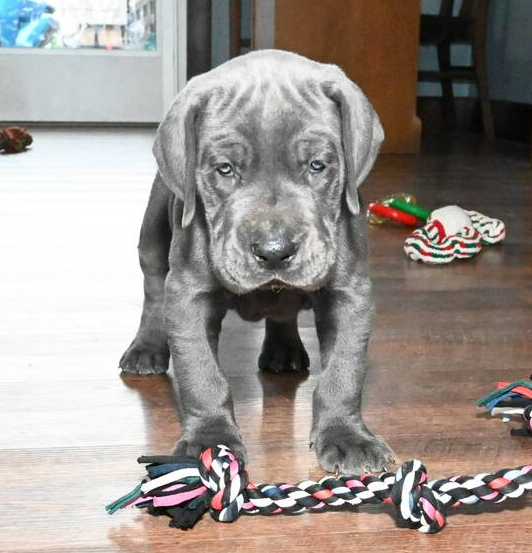 Apollo ist ein kräftiger und liebevoller Deutscher Doggenrüde, der in einer familiengeführten Zucht aufgezogen wird. Er ist gut sozialisiert, verspielt, freundlich zu Kindern und anderen Tieren und zeigt sich als sanfter Riese mit großem Herz.